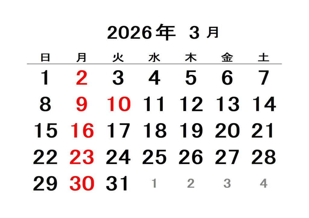 今年ももう3月になってしまいました。 あっという間の2ヶ月でした。今月から新しい機器ゼログラウェーブを導入して、新メニューに力を入れいています。 今月中は、かなりお得なお試しキャンペーン中なのでご注目してください。 3月のお休みです。