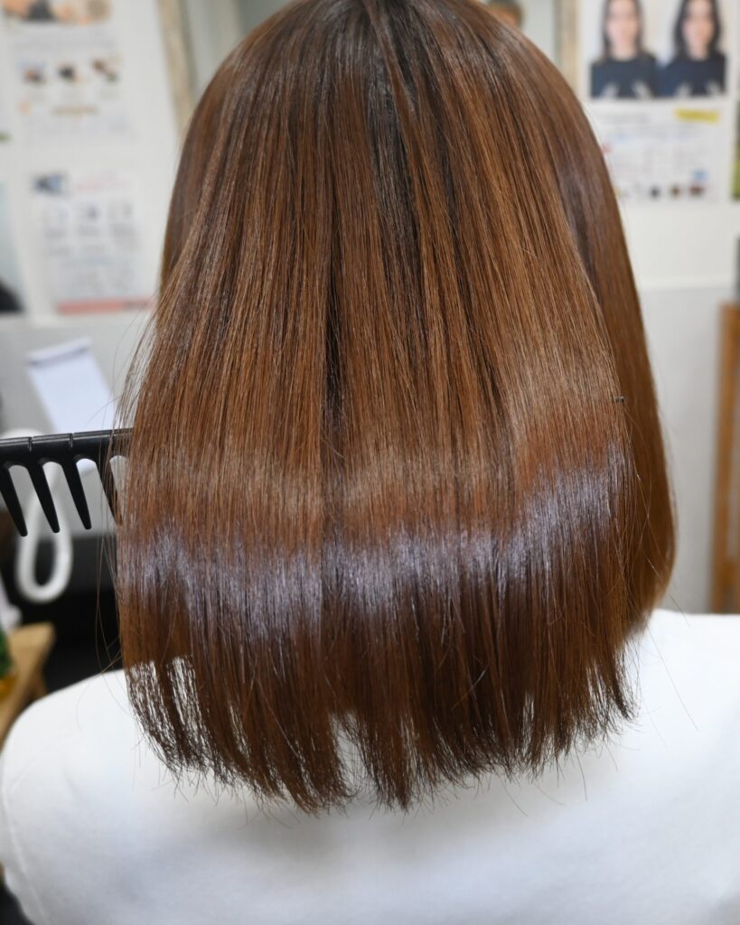 激しいダメージや癖は縮毛矯正や何度か定期的に行うことで改善していきます。